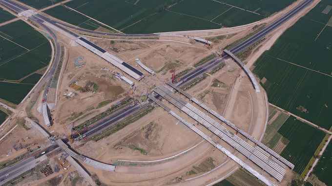 兰原跨“大广高速公路”潘店互通立交钢箱梁桥顺利跨越